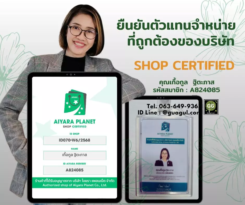ร้านค้าจดทะเบียนพาณิชย์ถูกต้องมากกว่า 12 ปี ยืนยันตัวแทนจำหน่ายจากบริษัท รหัสตัวแทน A824085 เกื้อกูล ฐิตะภาส จำหน่ายผลิตภัณฑ์นวัตกรรมงานวิจัย