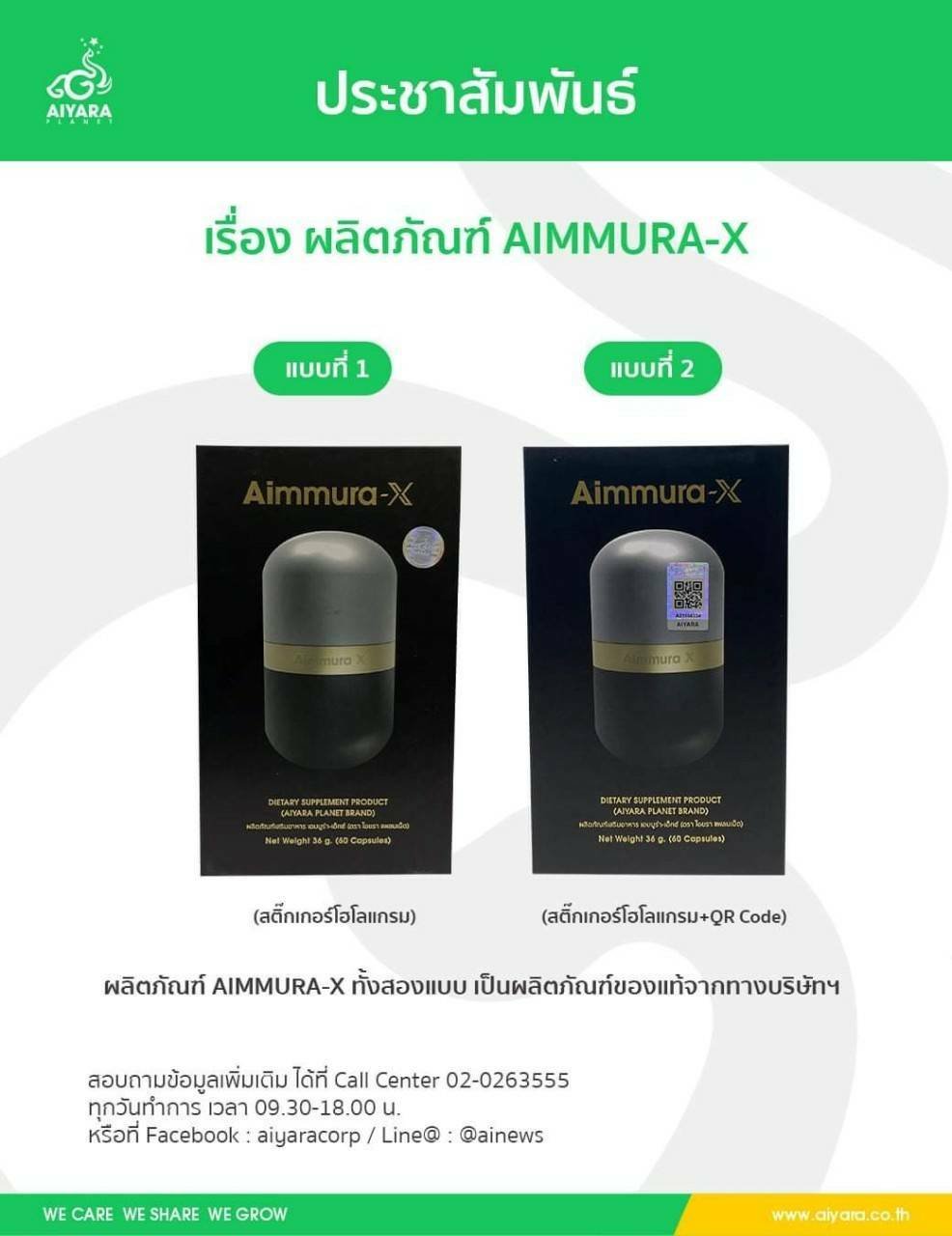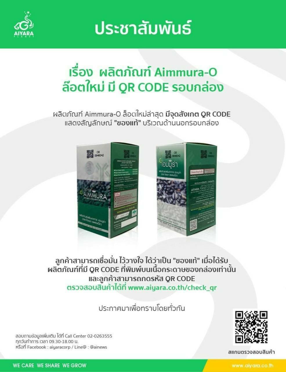ผลิตภัณฑ์ Aimmura-X และ Aimmura-O มี QR Code แบบใหม่ ลูกค้ามั่นใจ เชื่อมั่นได้ว่าเป็น "ของแท้"