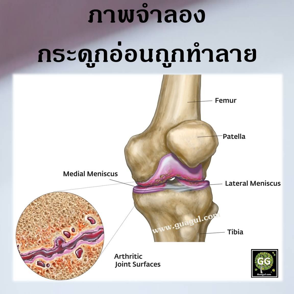 โรคข้อเสื่อมเป็นโรคเรื้อรังที่มีการลุกลาม และทำให้เกิดการเสื่อมสลายของกระดูกอ่อน ซึ่งเป็นข้อกระดูกที่รับแรงกระแทกของร่างกาย โดยมีสาเหตุหลายประการและปัจจัยเสี่ยงหลายหลายอย่างที่มีผลทำให้เกิดโรค เช่น เกิดการบาดเจ็บจากผู้ที่เหตุหรือน้ำหนักตัวที่มากเกินไป และมีผลต่อความแข็งแรงของกระดูกอ่อนที่หอหุ้มปลายกระดูก ทำให้เกิดการอักเสบดำเนินไปอย่างต่อเนื่องเช่นการอักเสบบริเวณข้อและเส้นเอ็นต่างๆทำให้เกิดเส้นเอ็นยึดหรือเส้นเอ็นหลวงเป็นผลกระทบทำให้กระดูกมีความคาดเคลื่อนตัวแบบอิสระเกิดแรงกระทำต่อกระดูกที่อยู่ติดกันนำมาซึ่งการเสื่อมสลายของกระดูกออนปัจจัยเสี่ยงสำหรับโรคกระดูกเสื่อมคือความอ้วนการบาดเจ็บและการขาดวิตามินดี