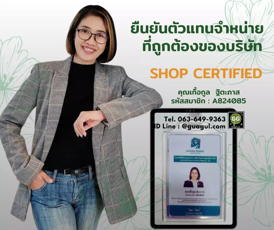 ข้าพเจ้า นางเกื้อกูล ฐิตะภาส รหัสสมาชิก A824085 ได้รับอนุญาตจาก บริษัท ไอยรา แพลนเน็ต จำกัด ให้เป็นตัวแทนจำหน่ายผลิตภัณฑ์