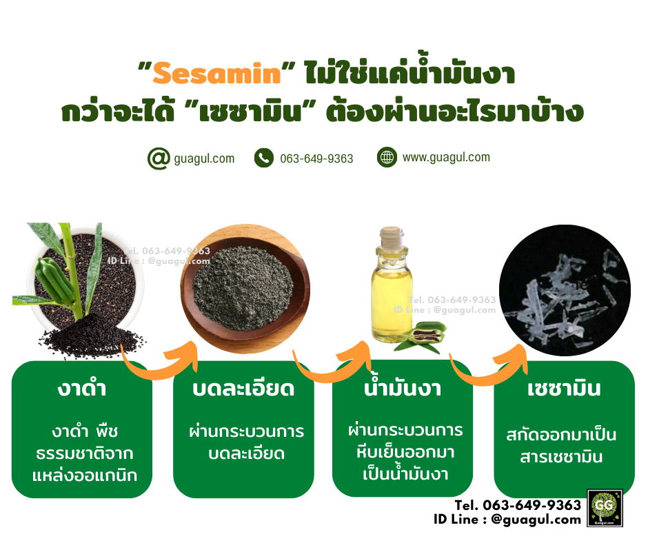 เซซามิน(sesamin) ผงงาที่ใช้เป็นผงงามีการบีบน้ำมันออกโดยขบวนการหีบเย็น(สกัดเย็น)