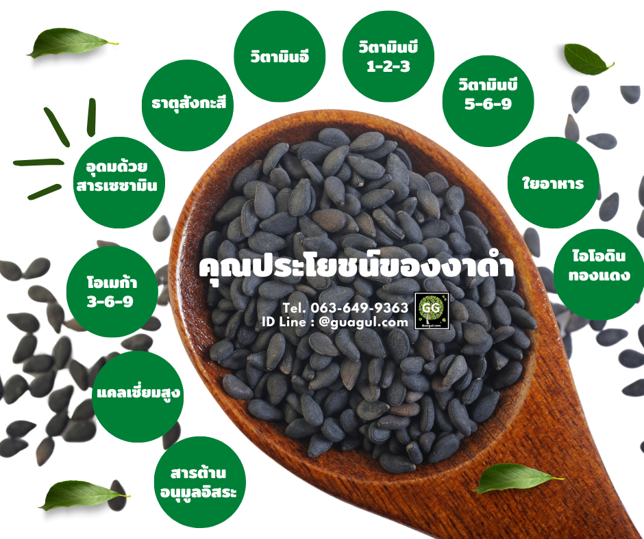 นอกจากนี้เมล็ดงา ยังอุดมด้วยแร่ธาตุ วิตามินมากมาย เช่น แคลเซี่ยมสูงกว่านมวัว 6 เท่า ธาตุเหล็ก แมกนีเซี่ยม สังกะสี ฟอสฟอรัส โปรแตสเซี่ยม ทองแดง รวมทั้งวิตามินบี ชนิดต่างๆ ซึ่งช่วยบำรุงระบบประสาท กระดูกและฟัน ผิวหนังและสรรพคุณของเซซามินในงาดำที่มีปริมาณมากที่สุด รายงานที่ผ่านมามากมายต่างค้นพบว่าสารเซซามินมีคุณสมบัติทางชีวภาพสูงมาก
