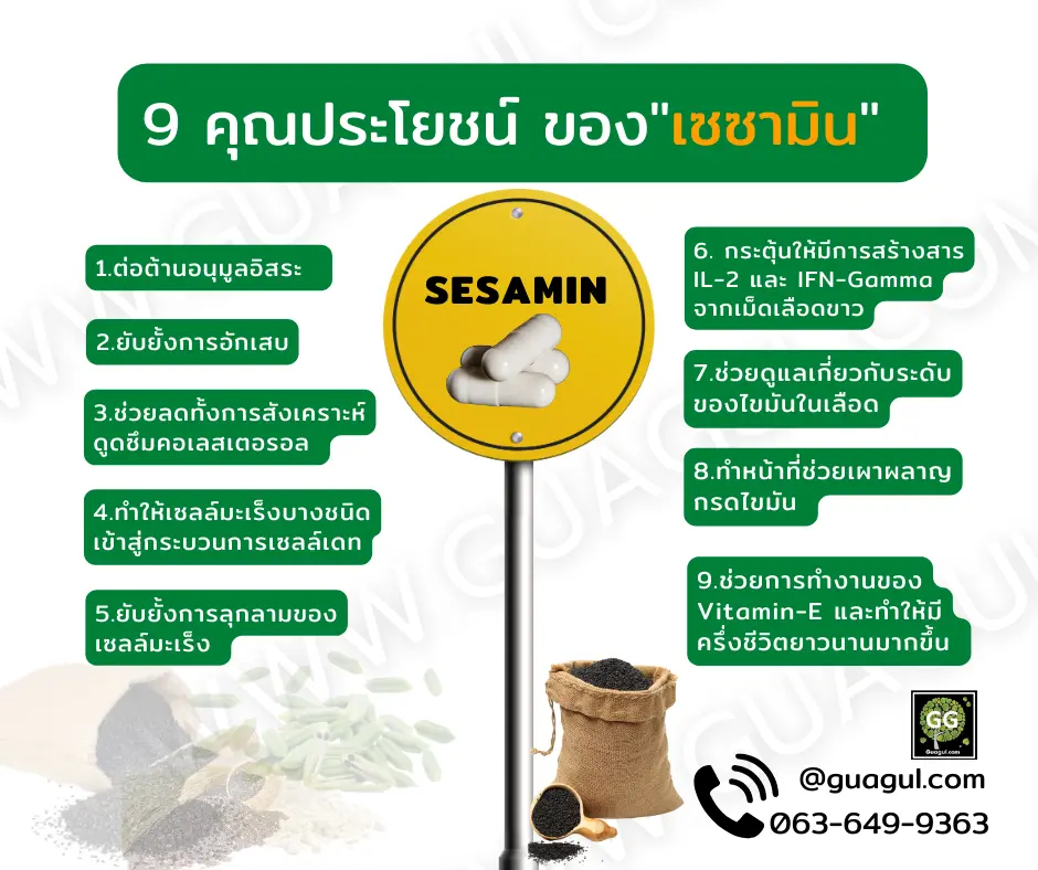 เซซามิน(sesamin) ช่วยการทำงานของ Vitamin-E(Enhancer) และทำให้มีครึ่งชีวิตยาวนานมากขึ้น
